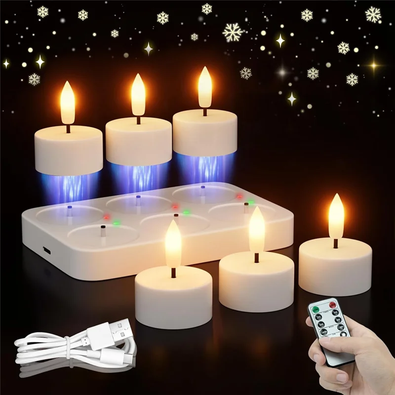 Lot de 6 Bougies LED Rechargeables avec Télécommande & Station de Charge – Sans Flamme