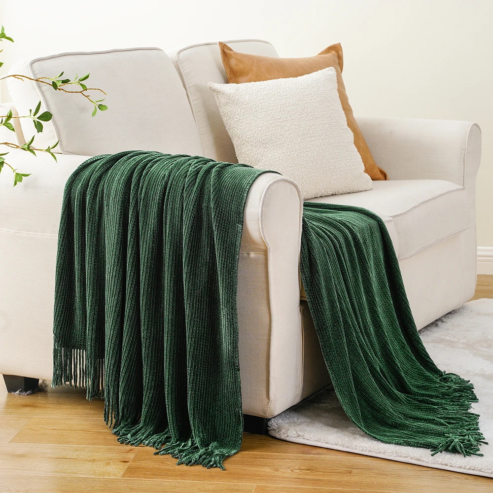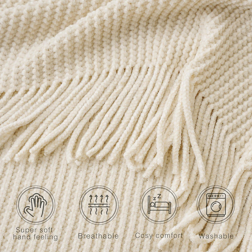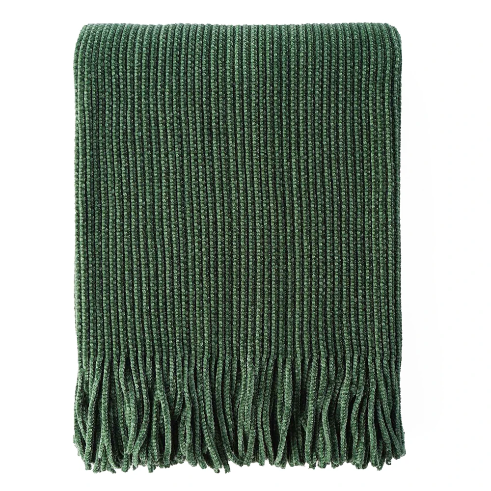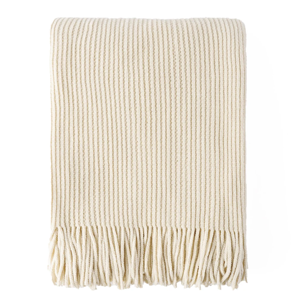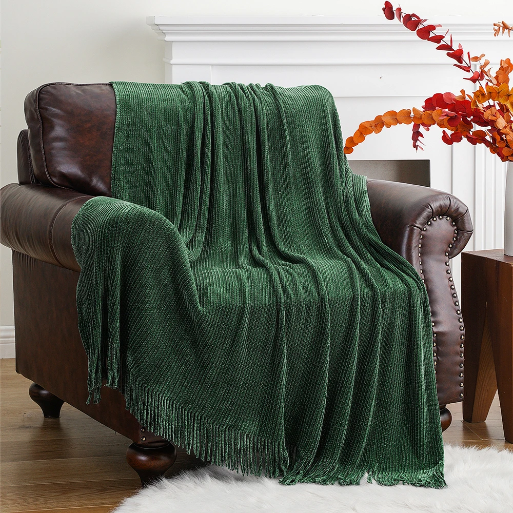 Plaid en chenille douce avec pompons – Couverture tricotée décorative pour lit et canapé