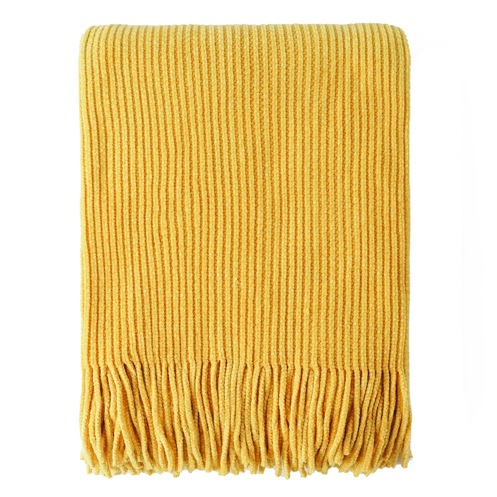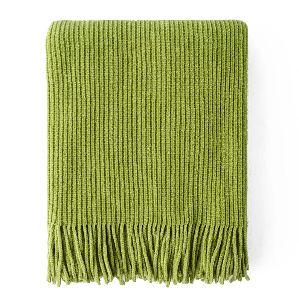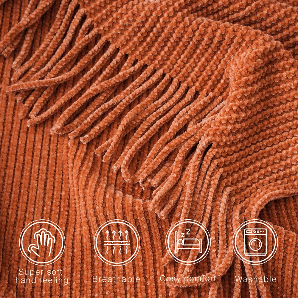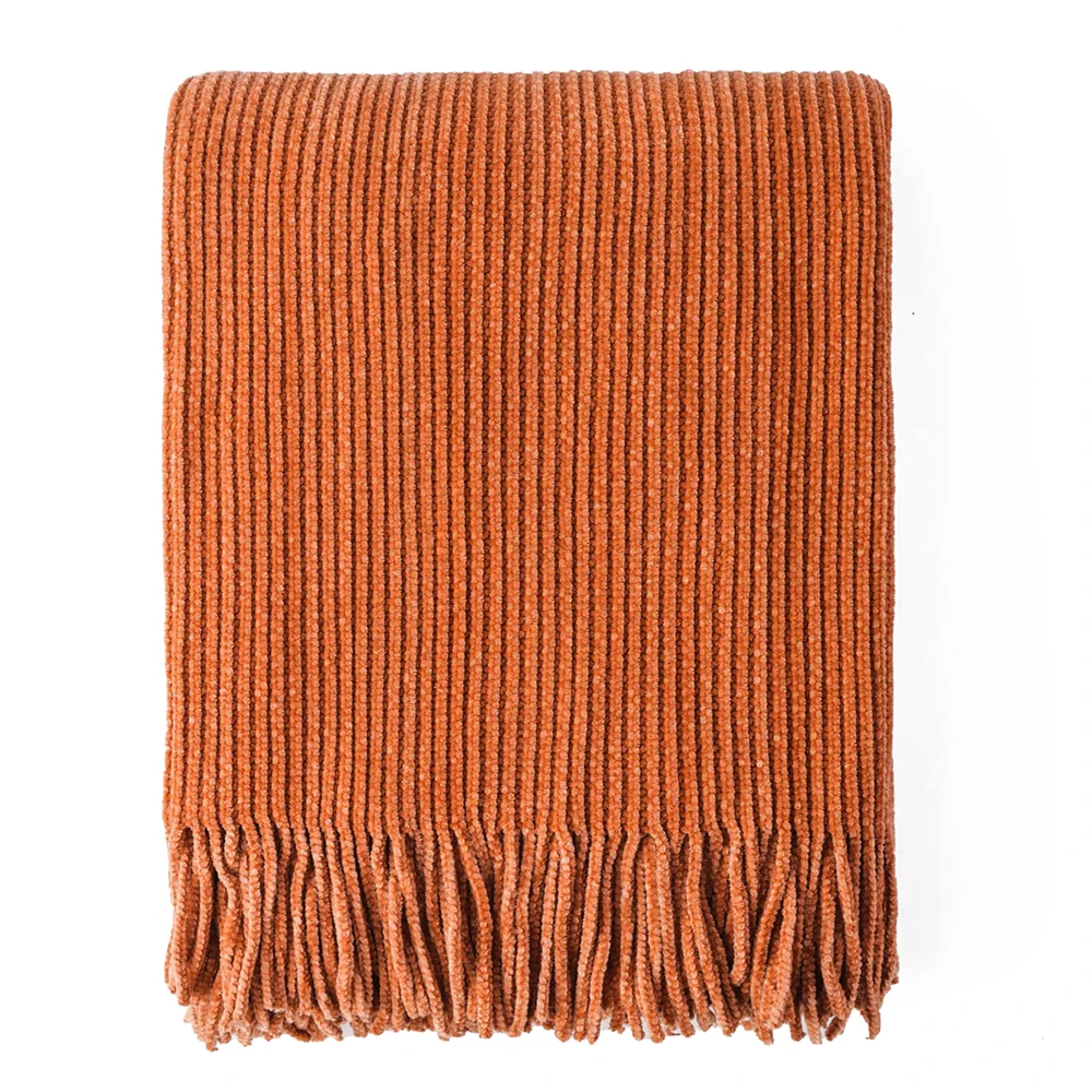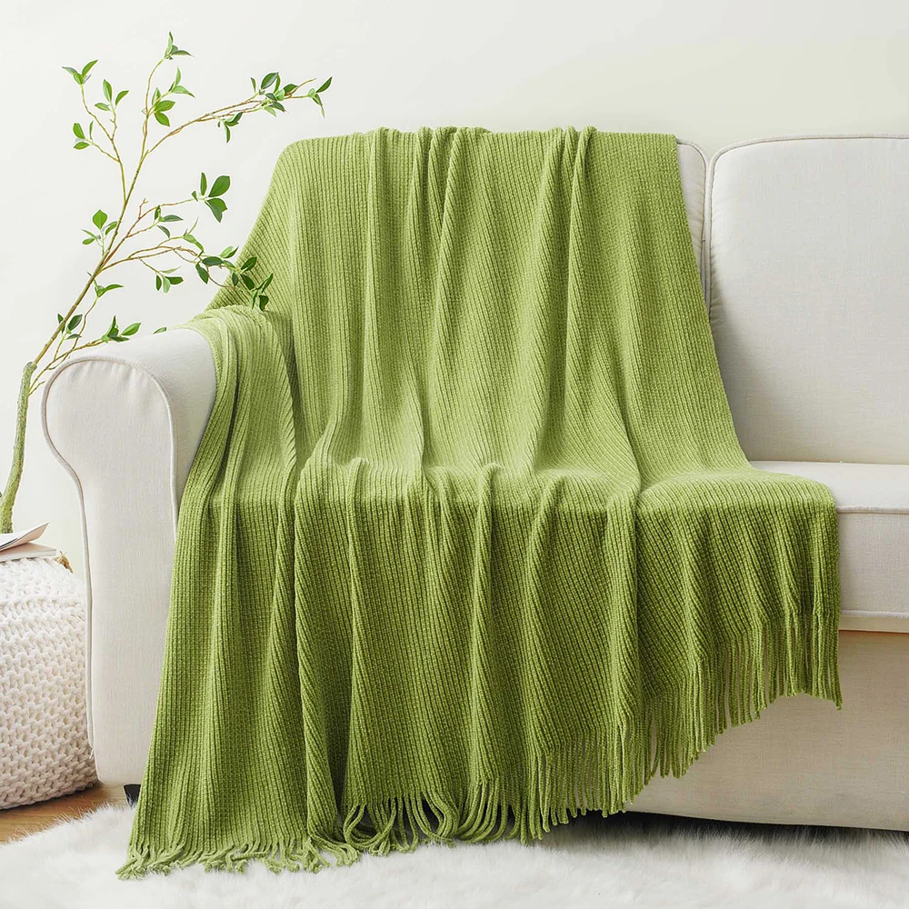 Plaid en chenille douce avec pompons – Couverture tricotée décorative pour lit et canapé