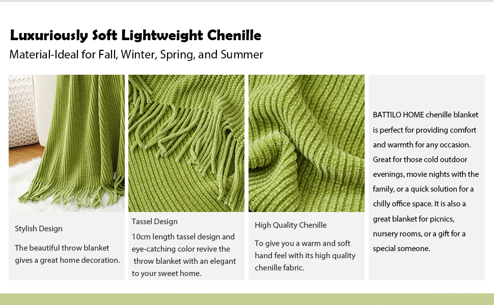 Matière : 100% polyester chenille douce, agréable au toucher