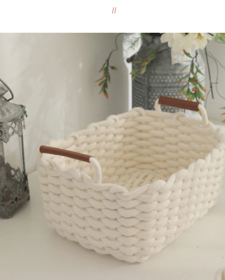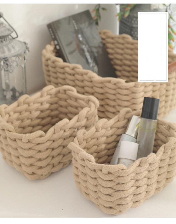 Panier de Rangement en Corde de Coton avec Poignées – Organisateur Multi-Usages