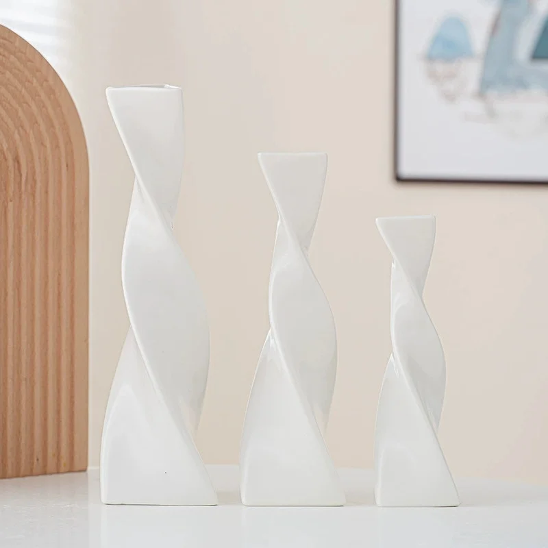 Vase Céramique Torsadé Minimaliste – Décoration Moderne pour Fleurs Sèches ou Fraîches